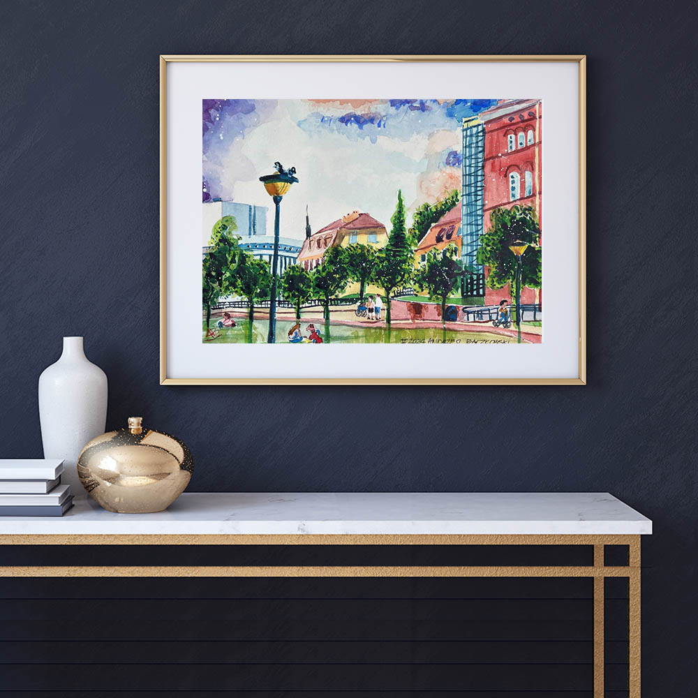 Watercolour painting ‘The Venice of Bydgoszcz’ depicts part of the Old Town in the Polish city where I live. The area is called Venice, because buildings there resemble Italian famous city. They are raising up as if straight from water of flowing the Młynówka River. In the past, rich burghers built in the area their plants and workshops and even a bathouse operated there.